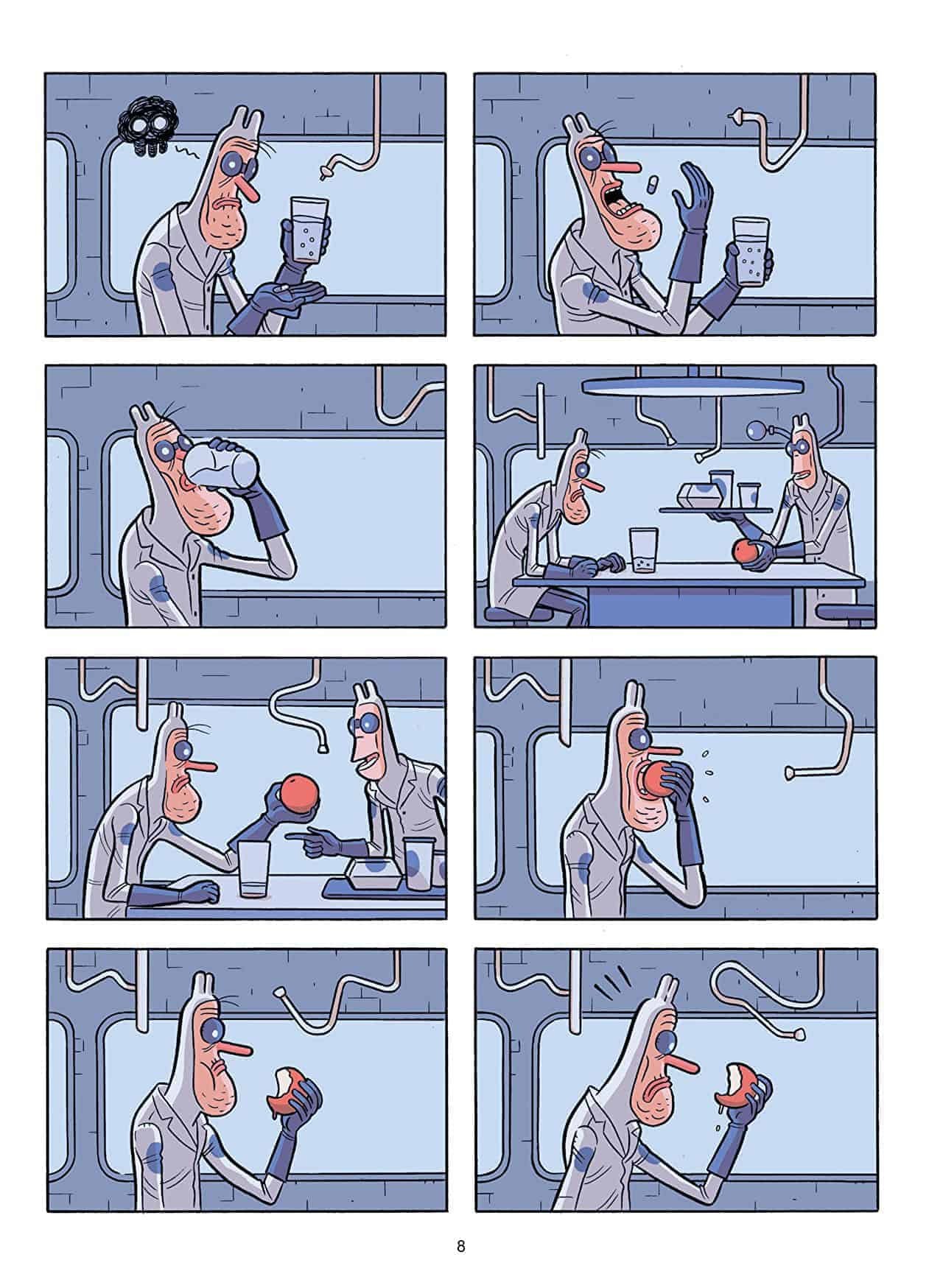 Lucas Varela, Argentinian, has illustrated comics for Dark Horse and Vertigo, but this is one of few projects he has both written and illustrated on his own. He says his style is of “clear line and an underground spirit; sinisterly silly, pink, rotten, and dismally friendly.” I’m not sure what that means, but I’m inclined to agree.