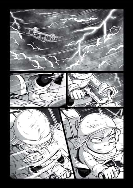 I met Nunumi at the Comic Arts Festival of Montreal in 2017, and I almost passed by her booth, but I’m very glad I didn’t. At first glance, SkyRover looks a bit like a Japanese manga for children, but to think that would be a mistake.