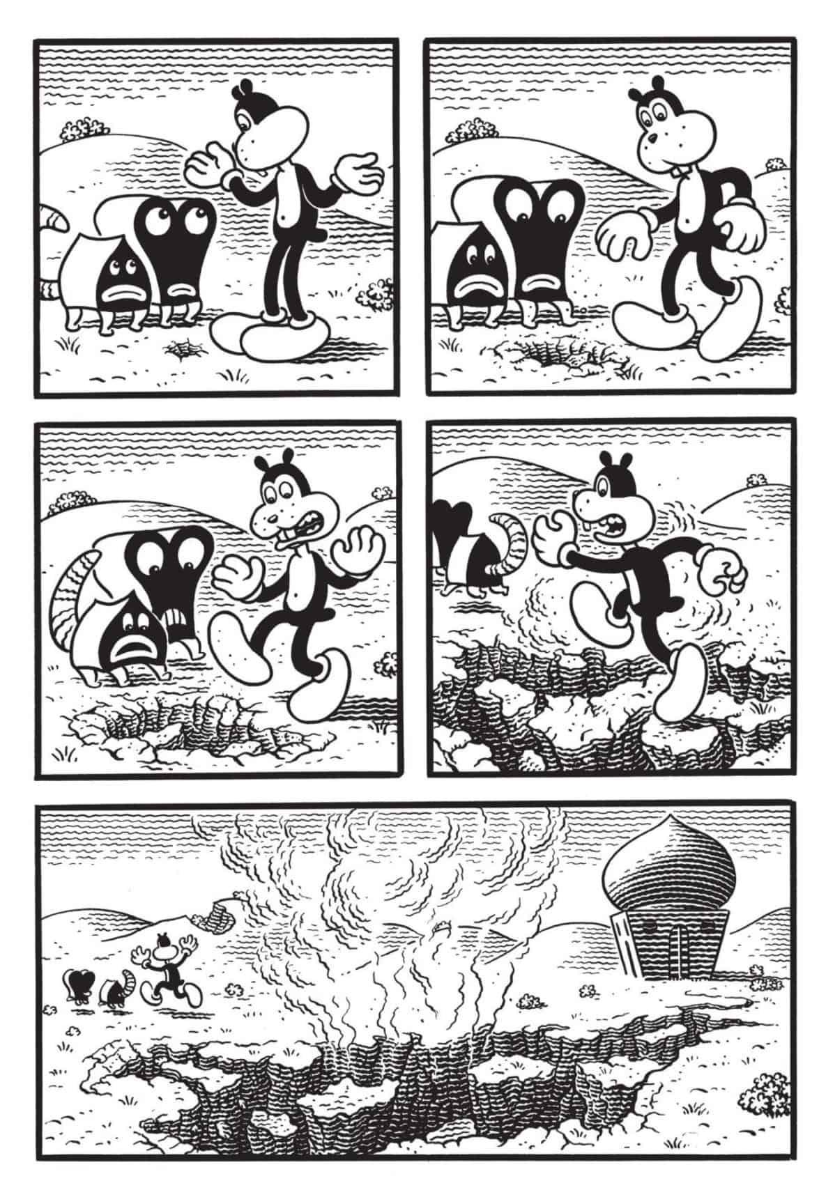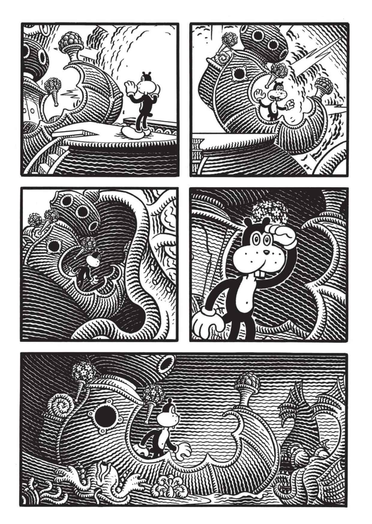 If this one doesn’t leave you speechless, it will for sure leave you saying “WTF? I was surprised to discover Jim Woodring so late in life. He’s been creating comics for more than thirty years for Fantagraphics, and Frank –the cheerful, responsible cat/dog/whatever creature — has been a staple character for him. His worlds are founded in surrealism; if you’re a fan of Salvador Dali you won’t be disappointed with Jim Woodring.